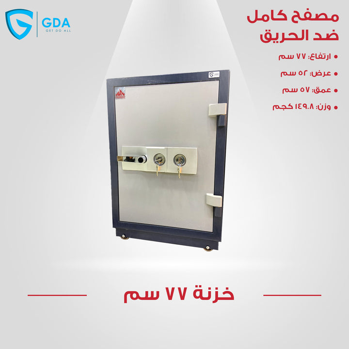تمتع بأعلى درجات الحماية مع خزينة الأموال المصفحة بالكامل من GDA، مقاس 77 سم. تم تصميمها خصيصًا لتوفير أمان فائق للمستندات، النقود، والممتلكات الثمينة في بيئات تتطلب حماية عالية مثل الشركات، المكاتب، العيادات، أو المنازل. تأتي بهيكل فولاذي مصفح بالكامل، مع نظام غلق قوي يصعب كسره أو التلاعب به.