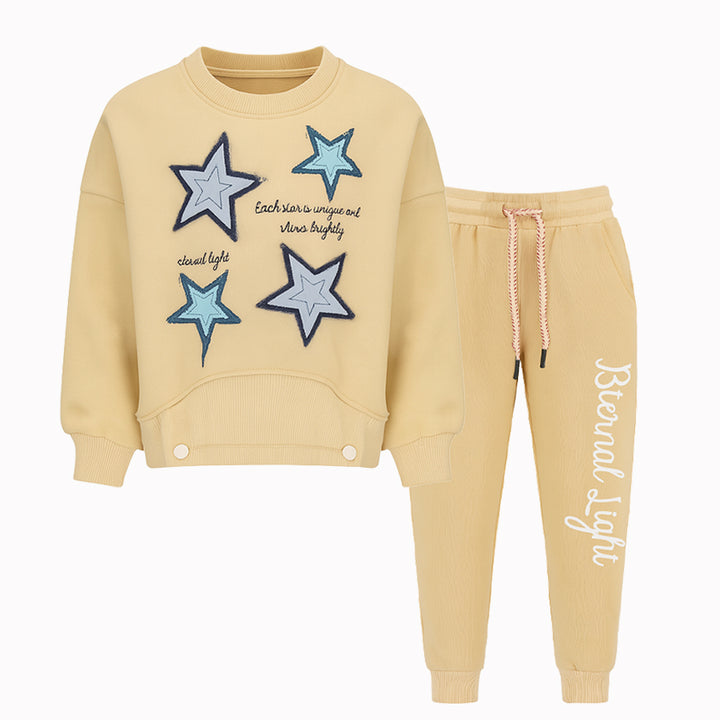 تصميم عصري: تيشيرت بياقة دائرية وبنطلون بتفاصيل أنيقة، يناسب الأنشطة اليومية.