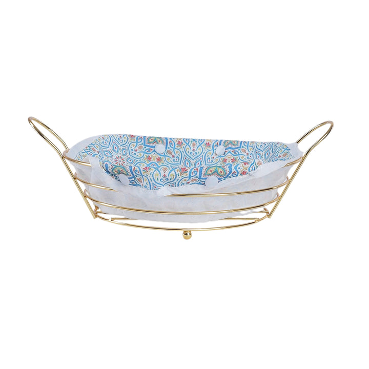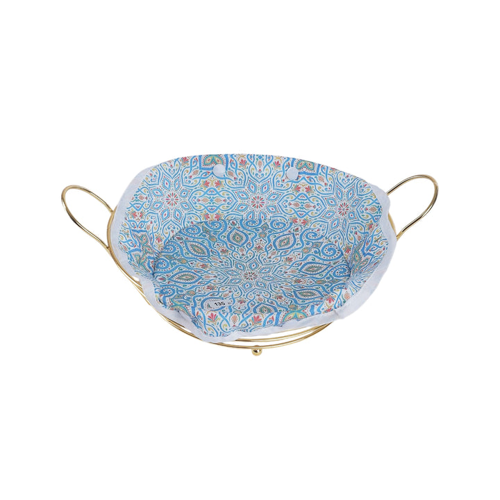 سبت عيش ستانلس ستيل دهبي مدور موديل 1608 مع كفر رسومات أنيق، مثالي لتقديم وتخزين الخبز بطريقة عملية وعصرية، بخامة متينة تحافظ على الشكل والجودة لفترة طويلة.