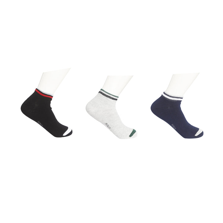 شراب أولادي من ماركة سولو، تصميم سوكيت قصير مريح ومصنوع من ليكرا مرنة تناسب مقاس القدم 8-10. يأتي بباك 3 قطع منقوشة تضيف لمسة عصرية وأنيقة. مثالي للاستخدام اليومي ويوفر راحة ودعم للقدم طوال اليوم.