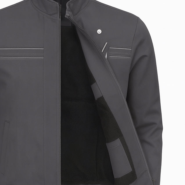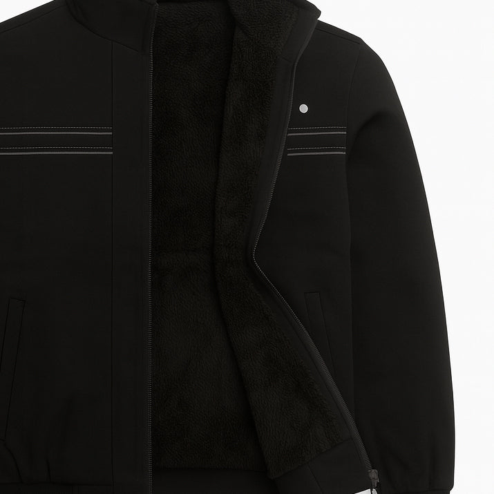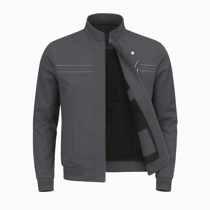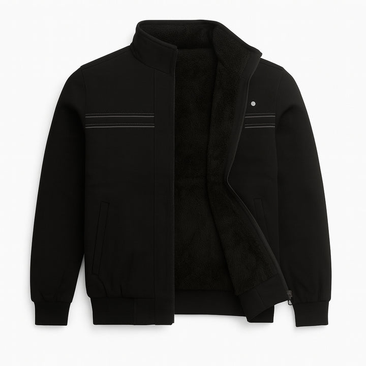 جاكيت رجالي شتوي RAFAL خامة جبردين سادة بتصميم عملي وأنيق يوفر الدفء والمظهر العصري. مناسب للخروج اليومي ومتوفر بمقاسات L إلى 3XL.