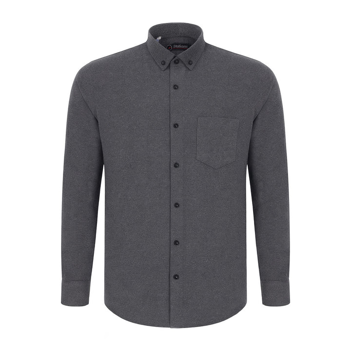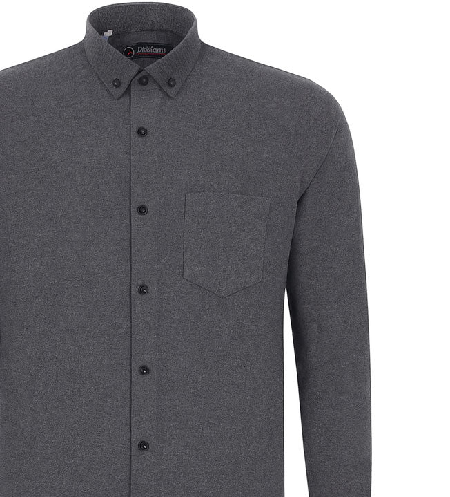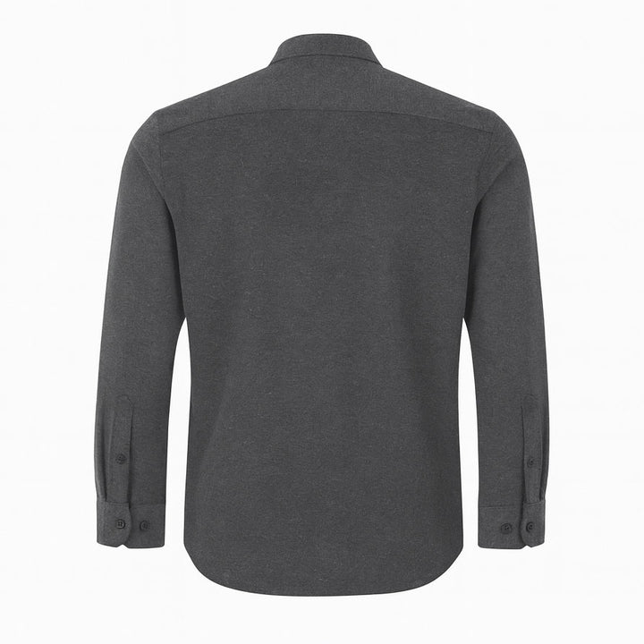 قميص صوف باللون الرصاصي يعطي شكل رايق وشيك بدون مجهود. مناسب للجو البارد والحركة اليومية.