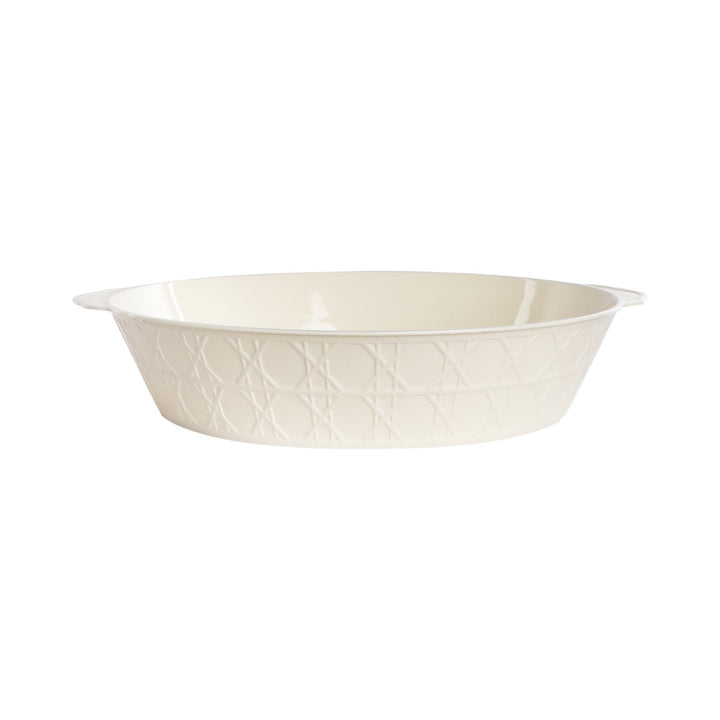 ● تصميم بيد مدور: يتميز الطبق بوجود يدين مدورتين على الجانبين، مما يسهل حمله وتحريكه بسهولة، ويضمن لك راحة إضافية أثناء استخدامه سواء كان في المطبخ أو على الطاولة