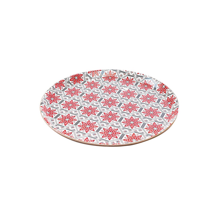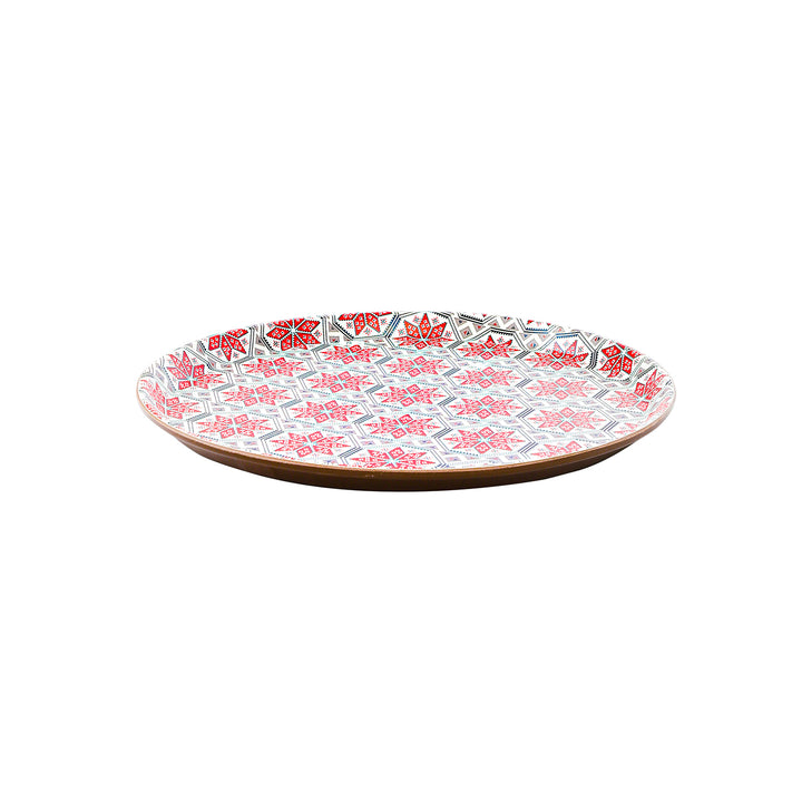 صينية تقديم دائرية بقطر 35 سم، مصنوعة من بلاستيك متين وخفيف الوزن، مناسبة للاستخدام اليومي في التقديم داخل المنزل أو أثناء العزومات.