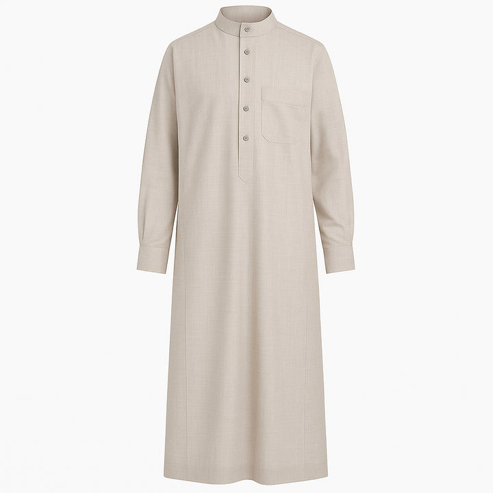 • أزرار معدنية متينة تضيف لمسة فاخرة وعملية للجلابية.