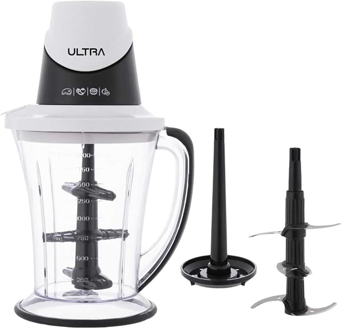 استمتعي بتحضير الوجبات بسرعة وسهولة مع كبة الترا موديل 150 باللونين الأبيض والأسود. تتميز بمحرك قوي بقدرة 500 وات وشفرات ستانلس ستيل عالية الجودة لتقطيع وفرم المكونات بكفاءة، مع خاصية قفل الأمان لضمان استخدام آمن في كل مرة.
