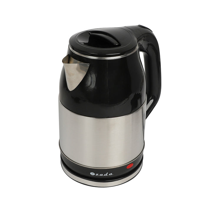 استمتع بغلي الماء بسرعة وأمان مع غلاية استانلس ستيل من زادا – موديل ZKT-250SS بقوة 1500 وات وسعة 2.5 لتر.